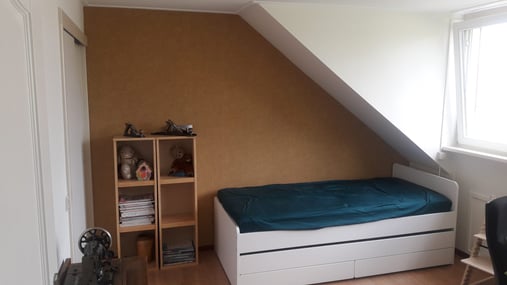 Tijdens dit project heeft een slaapkamer in Herwijnen weer een volledig nieuwe uitstraling gekregen. Alle muren zijn gesausd met de extra duurzame later van Signatuur. De deuren en kozijnen zijn gegrond, afgelakt en vervolgens voorzien van Signatuur Aqua Zijdeglanslak. Tenslotte zijn er nog twee behangen aangebracht. Het bloembehang is van het Engelse Harlequin. Het okerkleurige behang is afkomstig van BN Wallcoverings.